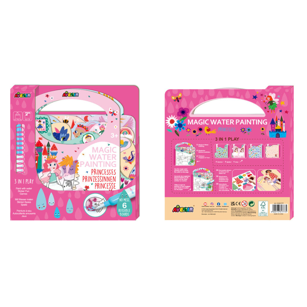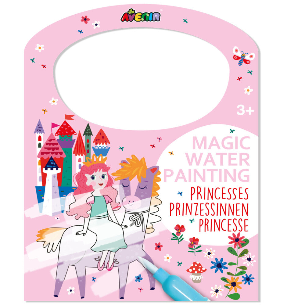 Fill the magic water painting pen with water and use it on the reusable boards to reveal the colour on the page. No mess!