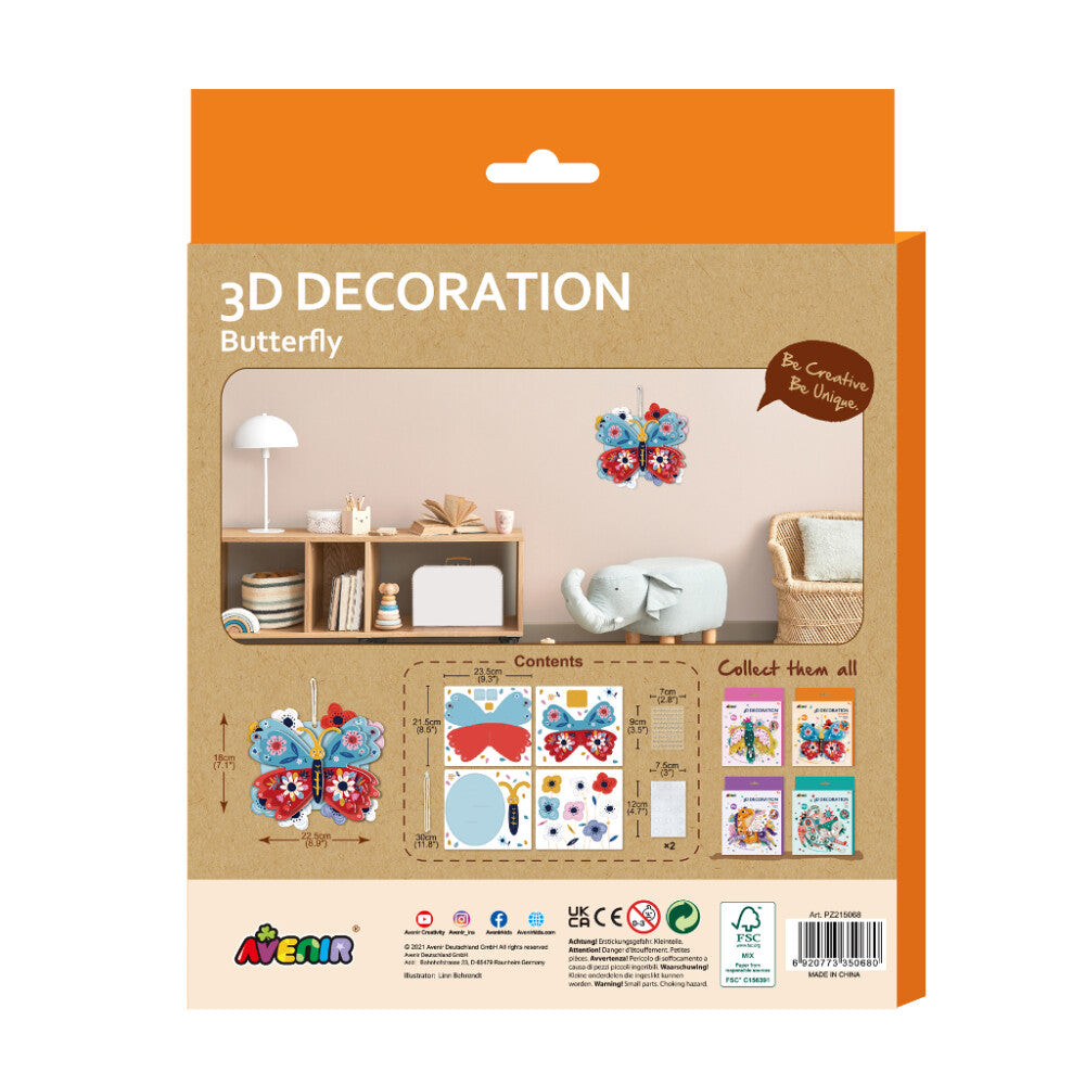 Avenir 3D Decoration Medium: BUTTERFLY 7.09x8.86 in, in box 8.66x0.39x11.22 in, 5+